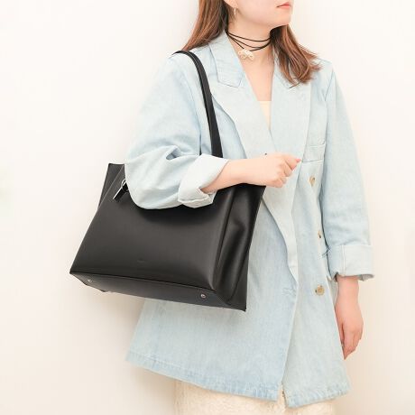 女性らしいシルエットと落ち着いたカラーが上品なトートバッグ