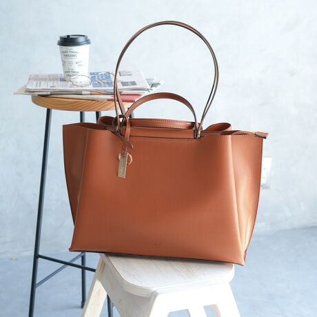 女性らしいシルエットと落ち着いたカラーが上品なトートバッグ