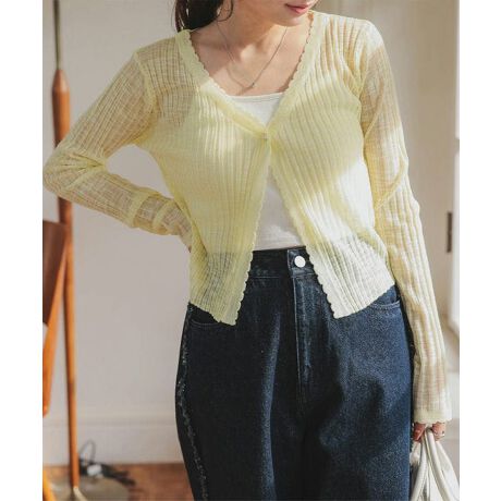 程よい透け感のシアーリブニットカーディガン。