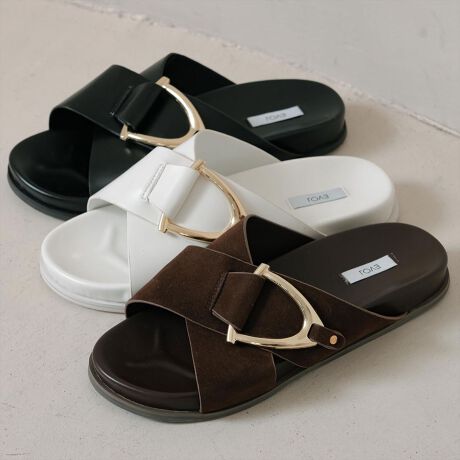 どんなお洋服にもばっちり決まるフラットサンダル。大きめのバックルが夏のシンプルなコーディネートのポイントになってくれます。上品な艶感が特徴の材料はもちろん、今季トレンドの毛足が短めのブラウンスエードもシーズンムードを盛り上げます。取り入れるだけで高見えするアイテム。