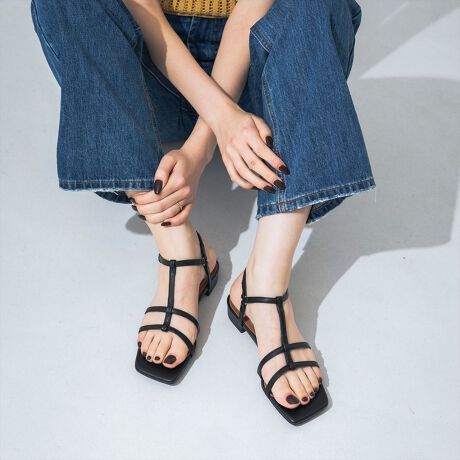 大ヒットしたポインテッドTストラップサンダルにスクエアトゥタイプが登場!細ストラップで華奢見え抜群なルックスはそのままに、やや幅のあるスクエアトゥが履き心地の良さをさらにアップデート。カジュアルな雰囲気がお好きな方にもおすすめ◎かかとはゴム仕様になっているので片手でスッと着脱できるようになりました。普段使いはもちろん、軽量で持ち運びにも適しているので旅行中の履き変えサンダルにもおすすめ!