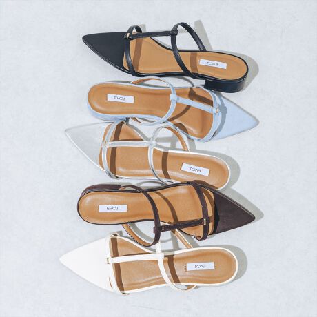 華奢なTストラップとシャープなポインテッドトゥが上品なサンダル。ベーシックながらも甲部分の細かなゴールドパーツがポイントになり、取り入れるだけで夏のシンプルなコーディネートも一気に洗練された印象に◎フラットすぎない2.5cmヒールはストレスフリーで安定感のある履き心地に。カジュアルにも綺麗めにもハマるサンダルはワードローブに1足は持っておきたいアイテム。