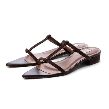 華奢なTストラップとシャープなポインテッドトゥが上品なサンダル。ベーシックながらも甲部分の細かなゴールドパーツがポイントになり、取り入れるだけで夏のシンプルなコーディネートも一気に洗練された印象に◎フラットすぎない2.5cmヒールはストレスフリーで安定感のある履き心地に。カジュアルにも綺麗めにもハマるサンダルはワードローブに1足は持っておきたいアイテム。