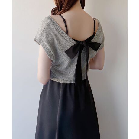 mipiarl ラメニットベスト+バックリボンキャミワンピースset