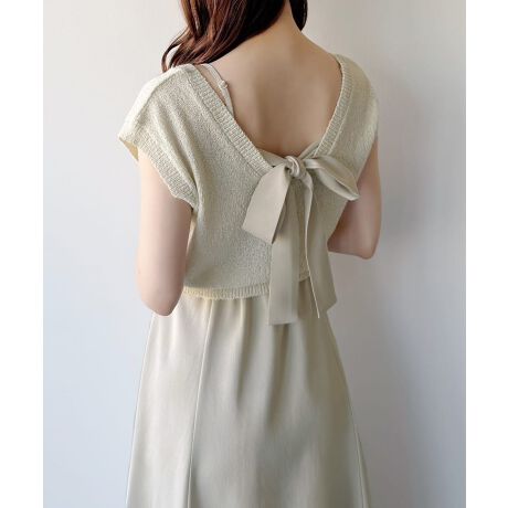 mipiarl ラメニットベスト+バックリボンキャミワンピースset