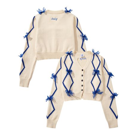 【HOOK】for girls リボン付きカーディガン ショット丈
