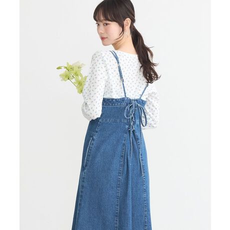 バックレースアップデニムキャミワンピース