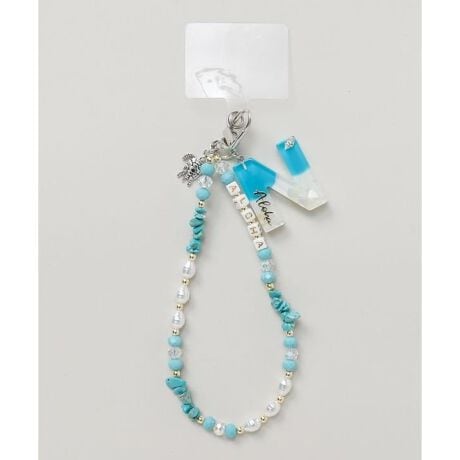 [型番:42CP5102-2025]海のきらめきを思わせるビーズが連なるイニシャルスマホストラップ。ハワイの海風を感じるような爽やかなカラーが魅力です。手首にかけられる仕様でスマホをしっかりホールド。大切な人とお揃いで持つのもおすすめです。