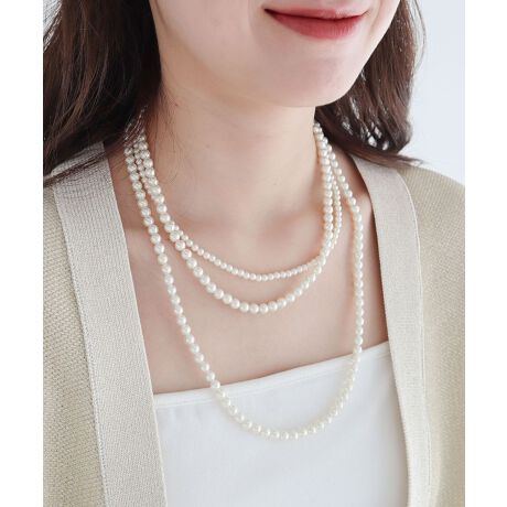 大きさの異なる3連パールビーズがフェミニンなネックレス。程よくボリュームがあり、顔まわりを華やかに演出します。アジャスター付きでサイズ調整ができるのも嬉しいポイント。合わせ方次第でデイリーからフォーマルシーンまで様々なシーンで活躍するおすすめのアイテムです。※モデル着用画像は、光の当たり具合で色味が違って見える場合がございます。※お使いのモニター環境によって商品の色味が違って見える場合がございます。