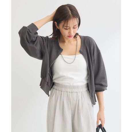 ふんわりとしたシルエットのヴィンテージライクなZIPカーディガン。コンパクトな丈感はどんなボトムも合わせやすく、1枚で旬なスタイリングをお楽しみいただけます。シルエットアレンジを楽しめるダブルジップ仕様も嬉しいポイント。軽やかな裏毛生地で持ち運びにも軽く、メイントップとしてはもちろん羽織りとしても活躍するおすすめのアイテムです。透け感[なし]