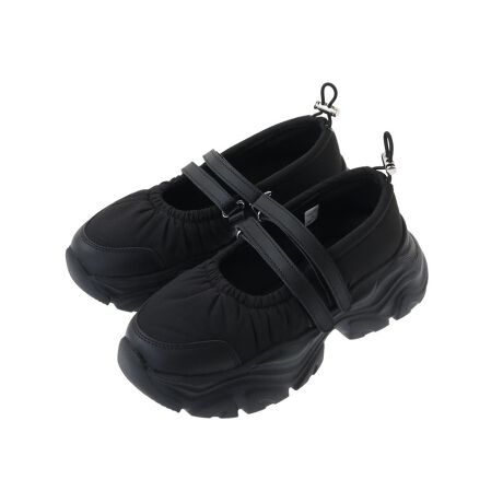バレーシューズとスニーカーをドッキングしたトレンド感のある一足。スポーティーなチャンキーソールに布帛生地をあわせることでソフトな雰囲気に仕上げました。シャーリングでふっくらとさせたトップ部分や細ベルトもポイント。プルストラップをドロストにしたしゃれ感あるアクセントもこだわりです。クッションインソールや軽量仕上げなど快適性も満足のアイテムです。※モデル着用画像は、光の当たり具合で色味が違って見える場合がございます。※お使いのモニター環境によって商品の色味が違って見える場合がございます。