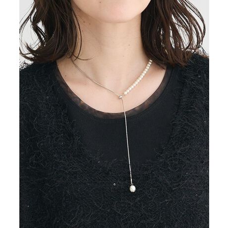 艶めくパールビーズと華奢なチェーンの組み合わせが洒落感のあるネックレス。スライダータイプで長さの調整がしやすく、シーンやスタイリングに合わせたアレンジがお楽しみいただけます。シンプルながらもニュアンス感のあるデザインがコーディネートに映え、印象的なアクセントを効かせてくれるおすすめのアイテムです。※モデル着用画像は、光の当たり具合で色味が違って見える場合がございます。※お使いのモニター環境によって商品の色味が違って見える場合がございます。