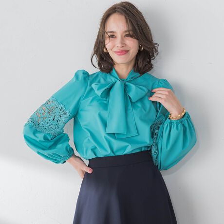 袖レース切替ブラウス≪洗濯機で洗える≫