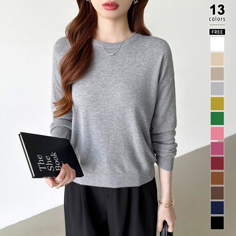 クルーネックニット。