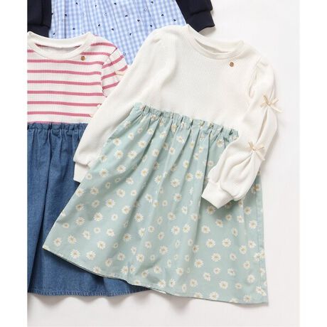 ワッフル生地の長袖にしっかりめのスカートでとても可愛いです。