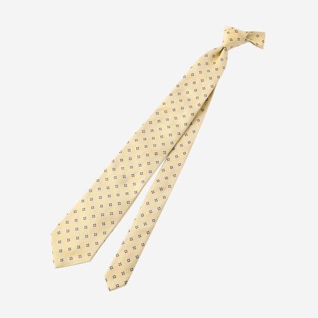 [型番:G1820506__]春夏のネクタイらしく清涼感を感じるバスケット織りの地組織にシンプルな花小紋を飛ばし、春夏らしく中心に白を効かせています。