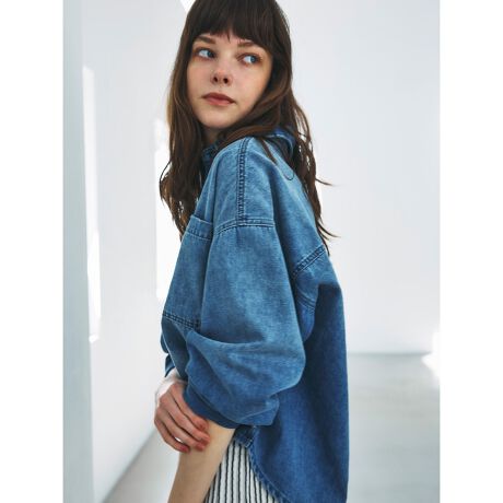 デニムクロップドシャツ≪洗濯機で洗える≫
