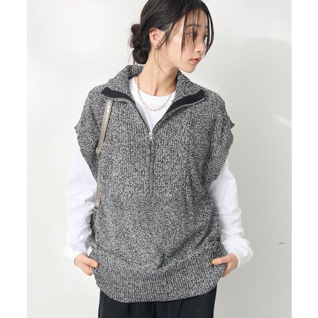 *ハーフジップデザインが旬テイストなニットベスト。・毛足の短いモール糸のミックスカラーで、コーディネートのポイントになります。