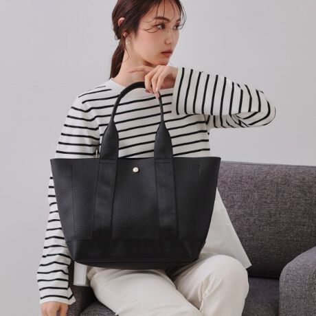 ・合皮素材とグログランテープを合わせた異素材使いのトートバッグ