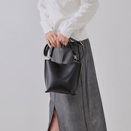 キレイめスタイリングに合わせやすいスッキリしたデザインのミニサイズワンハンドルバッグ。