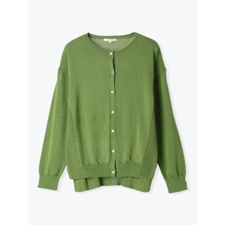 コーディネートのアクセントに映えるカラーニットカーディガン。