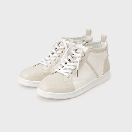 脱ぎ履きがスムーズなジップつきのミッドカットスニーカー。