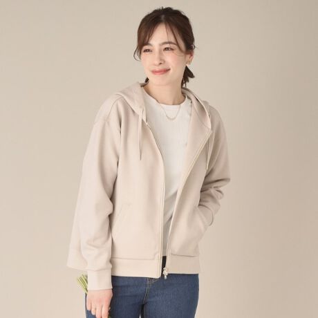 大人も着やすいきれいめパーカー。