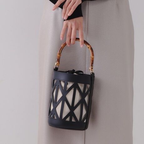 バンブーの持ち手が高級感を演出するバケツ型ワンハンドルバッグ。