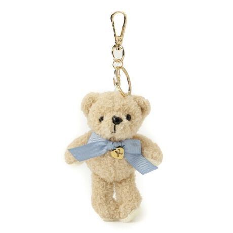 首元のハート型のイニシャルプレートとカラーリボンをあしらった、かわいらしいクマのマスコットチャームです。