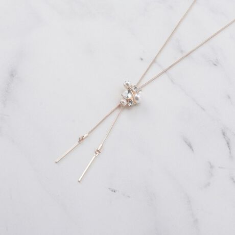 エレガントなフェイクパールとキラキラ輝くビジューを組み合わせたループタイネックレス。