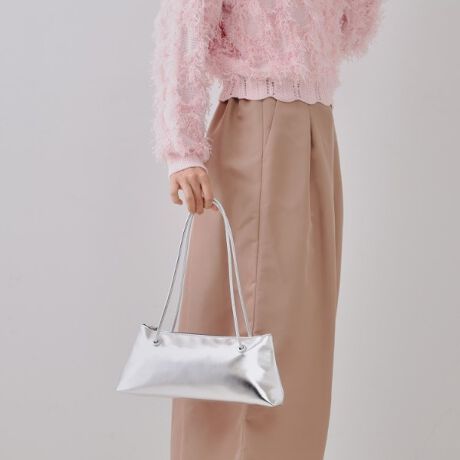 トレンド感のある横長シルエットのデザインバッグ。