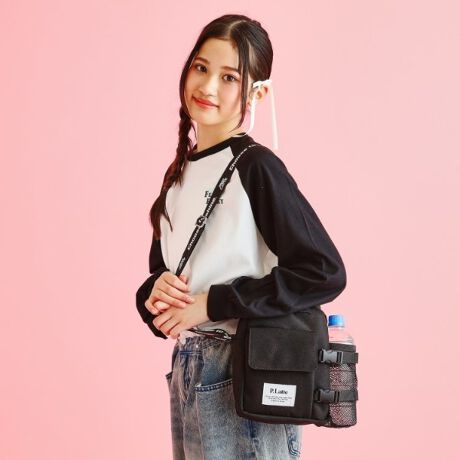 ボトルホルダー付きのタテ型ショルダーバッグ。