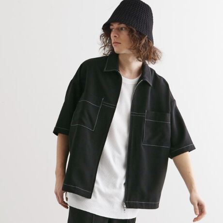 フロントのダブルポケットが目を惹く5分袖シャツアウター。