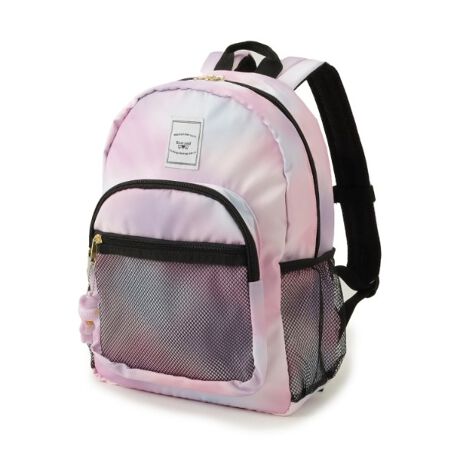 クマのチャームが付いたリュックは11リットルの内容量でお出かけや遠足にオススメです。
