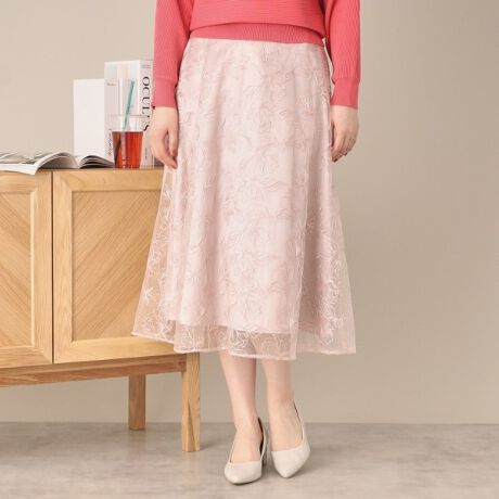 花刺繍の繊細なチュール素材が可愛いスカート。