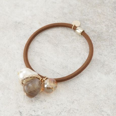 動くたびに軽やかに揺れるしゃらしゃらとしたアクセントが魅力のヘアゴムです。