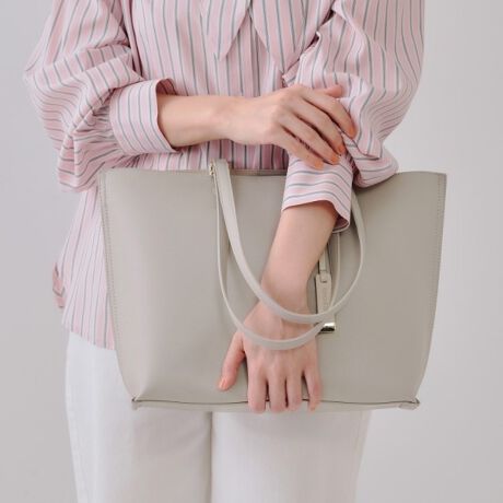 通勤通学のキレイめスタイリングに合わせやすいスッキリしたデザインのA4トートバッグ。