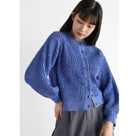 ポコポコとした立体的な編地が目を惹くニットカーディガン。
