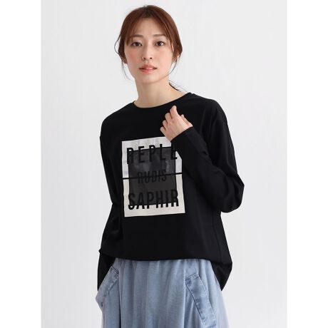 ■ロゴデザインにオーガンジー素材を配色した技アリなロングTシャツ。