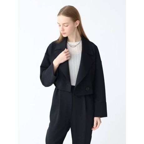 きちんと見えするテーラード型とカジュアルな段ボール素材を掛け合わせた、幅広いシーンに着用していただきやすいジャケット。もちっとした肉感と軽量感が着心地の良さを後押しします。コンパクトな着丈なので、ワンピースやスカート、ワイドパンツなどボリューム感あるアイテムとの合わせにおすすめです。