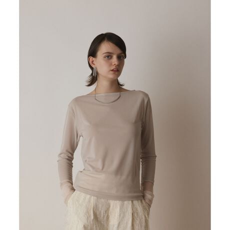袖先に切り替えた涼やかな透け感がアクセントになり、一枚着としてはもちろんの事、カーディガンやジャケットの袖口からちらりと覗かせた時にもおしゃれに決まります。