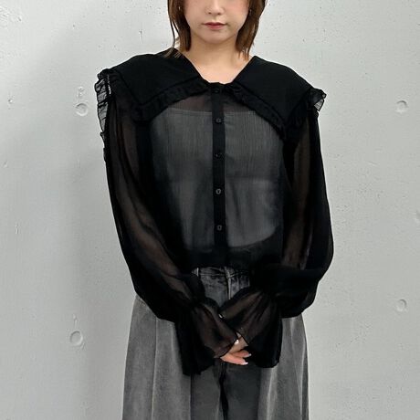 フリルを施した大きめのセーラー襟が特徴のブラウス。