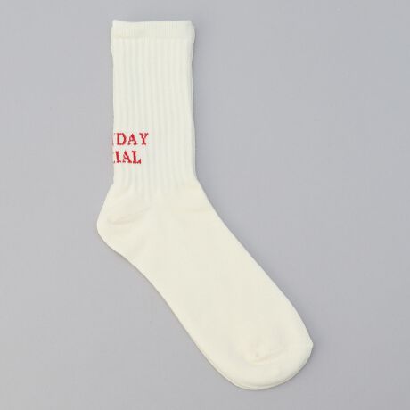 かかとに英字ロゴを配置したクルー丈の靴下。