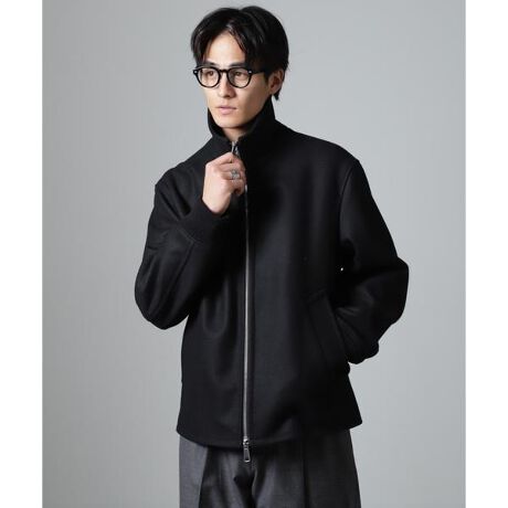 SUPER110'sウール原料使いの2重織りメルトンを使用したハイネックジップアップブルゾン。生地にはソトー社のハードプレス加工を施し、原料をギュッと圧縮しキレイな表面感に仕上げた1着。着心地はもちろん、袖を通したときに感じる特別感を与えてくれる、オススメのアイテムです。