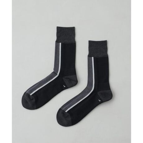 サイドとフロントから見たときで表情が変わるよう配色したセンターラインソックス。長めのリブが締め付けはソフトながらずれ落ちにくいテンションで、ストレスのない履き心地です。