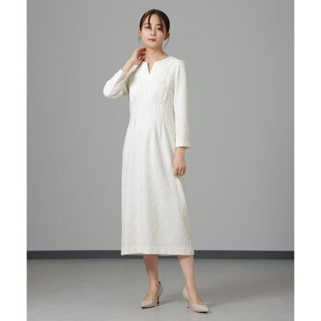 上品且つ華やかなジャガード素材のワンピース。着回しやすい単色カラーで着用シーンを選ばず、デイリーからオケージョンシーンまで重宝します。