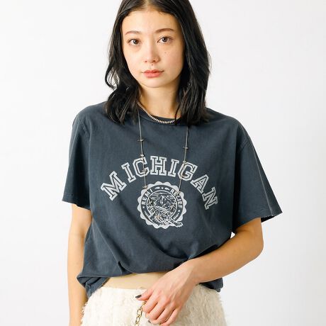 ブランドが得意とする、スペシャル加工(色落ち加工)を施したロゴTシャツ。