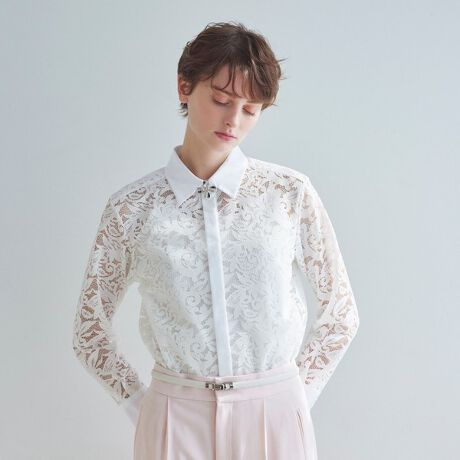 【Precious掲載】【ウォッシャブル】ボタニカルレース ブラウス