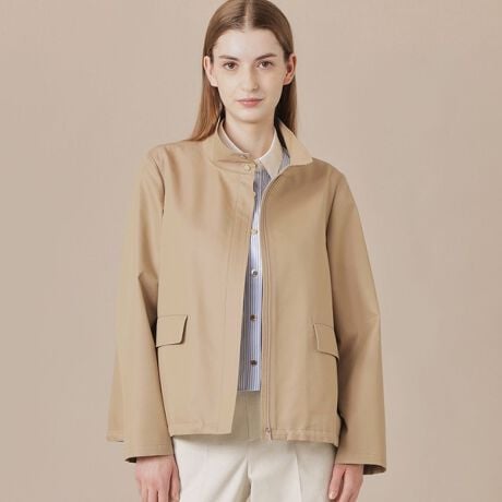 程よく身体から離れたシルエットでリラックス感のあるスタンドカラーのブルゾンです。スカートやワイドパンツとのスタイリングに活躍します。背裏にはストライプの別布を使用しています。同素材のコート(品番:G5A01520)、スカート(品番:G5S01520)、パンツ(品番:G5R14520)もご用意しております。