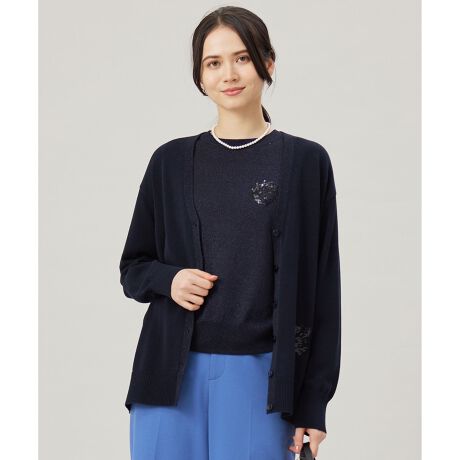 前立てのラメと裾のエンブレムが印象的なミドル丈カーディガン■デザイン前立てに施したラメと、左裾のスパンコールのエンブレム刺繍が自由区らしいカーディガンです。ミドル丈なので様々なコーディネートに合わせやすく、Vネックでお顔周りがすっきりと見えるデザインです。■素材特殊な撚糸方法で生み出すきれいな目面が特徴の強撚コットン素材です。強撚ならではのシャリ味は残しつつも、その特殊撚糸が生み出す原料本来のツヤ感も併せ持っています。■同素材アイテムニット(KRWRGM0255)